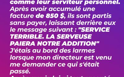 Une famille a critiqué mon service et a quitté le restaurant sans payer une facture de 850 $ – J’ai tourné la situation à mon avantage