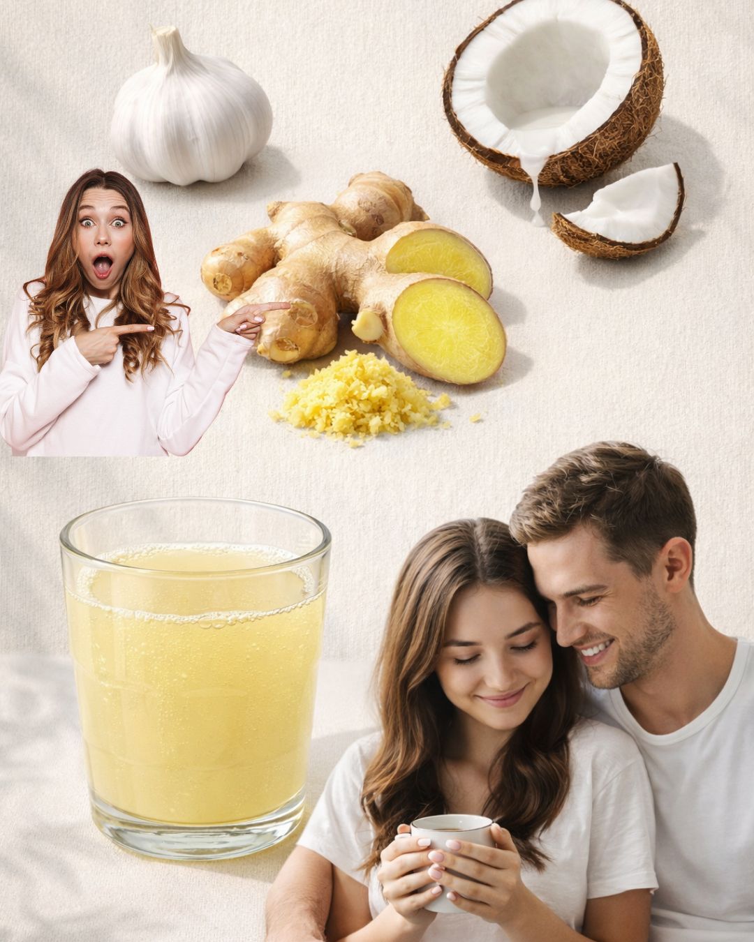 Cette recette simple — élaborée avec de l'eau de coco, de l'ail, du gingembre et du miel cru — est utilisée depuis des générations dans diverses cultures comme un renfort naturel pour la circulation, la résistance physique et l'équilibre hormonal.
