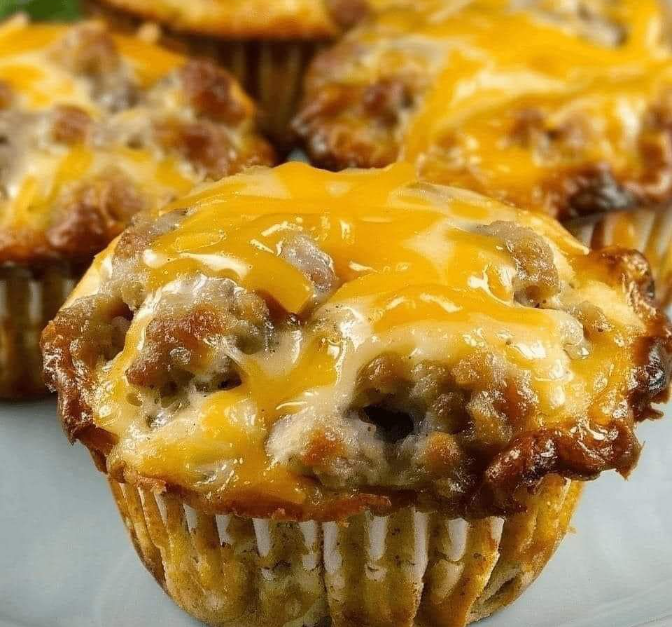 Dans un bol, fouettez les œufs. Mélangez le Bisquick et le fromage jusqu’à ce que le tout soit bien mélangé. La saucisse cuite doit être incorporée.