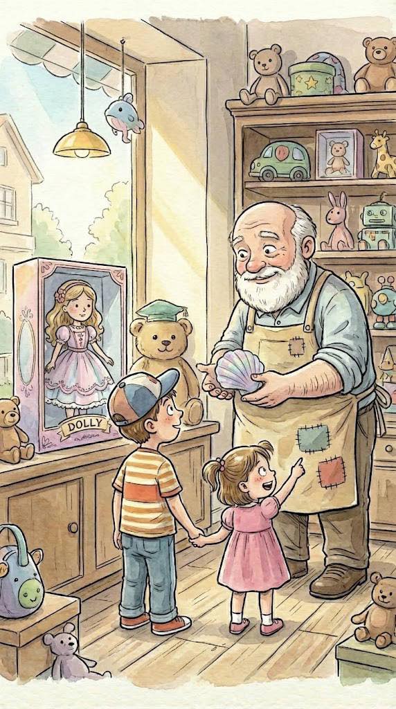 Le garçon lui prend la main et, tel un grand frère responsable, lui tendit la poupée.