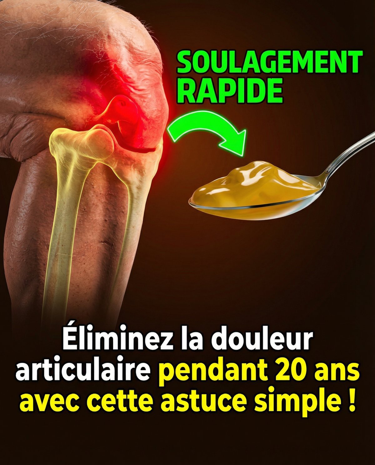 Imaginez ceci : vous venez de vous lever de votre chaise et cette douleur familière et agaçante dans vos articulations vous frappe à nouveau. Chaque mouvement est accompagné d'une vive douleur et l'idée de marcher ou d'accomplir des tâches simples semble de plus en plus lointaine. Toutefois, il existe une solution étonnamment rapide qui pourrait éliminer votre douleur articulaire jusqu'à 15 ans ! Cette solution ne nécessite ni médicaments coûteux ni traitements invasifs, mais repose sur des méthodes naturelles et efficaces.