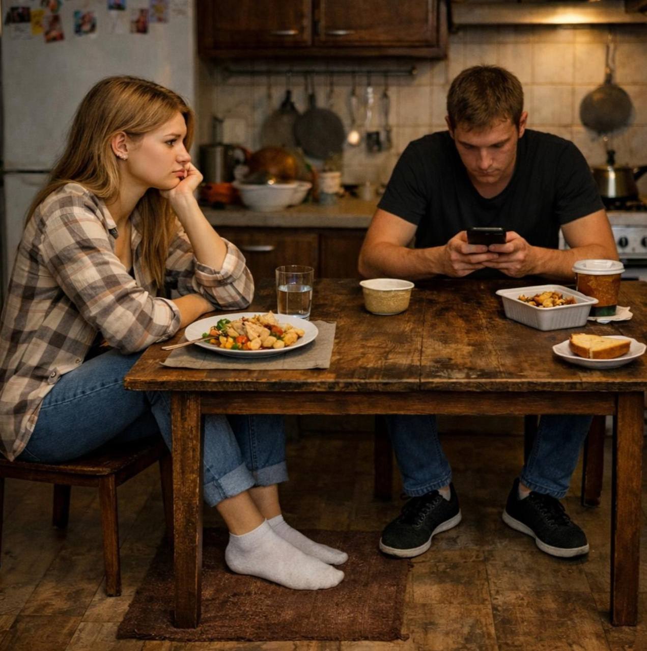 J'ai continué à essuyer la table de la cuisine, mais le chiffon ne glissait plus aussi facilement ; au contraire, il grinçait et s'incrustait dans le plan de travail.