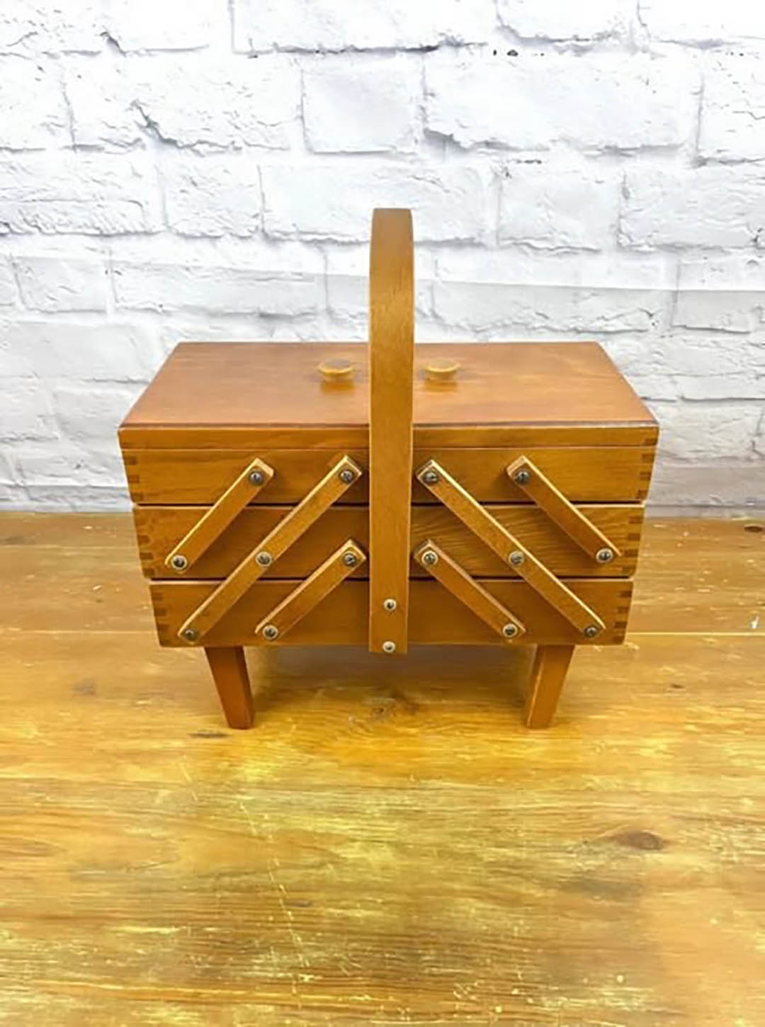 Elle était là, posée dans un coin sombre, presque oubliée. Une boîte en bois, solide, légèrement marquée par les années, mais étonnamment élégante. En soulevant délicatement le couvercle, nous avons découvert un intérieur soigneusement compartimenté. De petits espaces en bois, parfaitement ajustés, comme si chaque objet avait autrefois eu sa place bien précise.