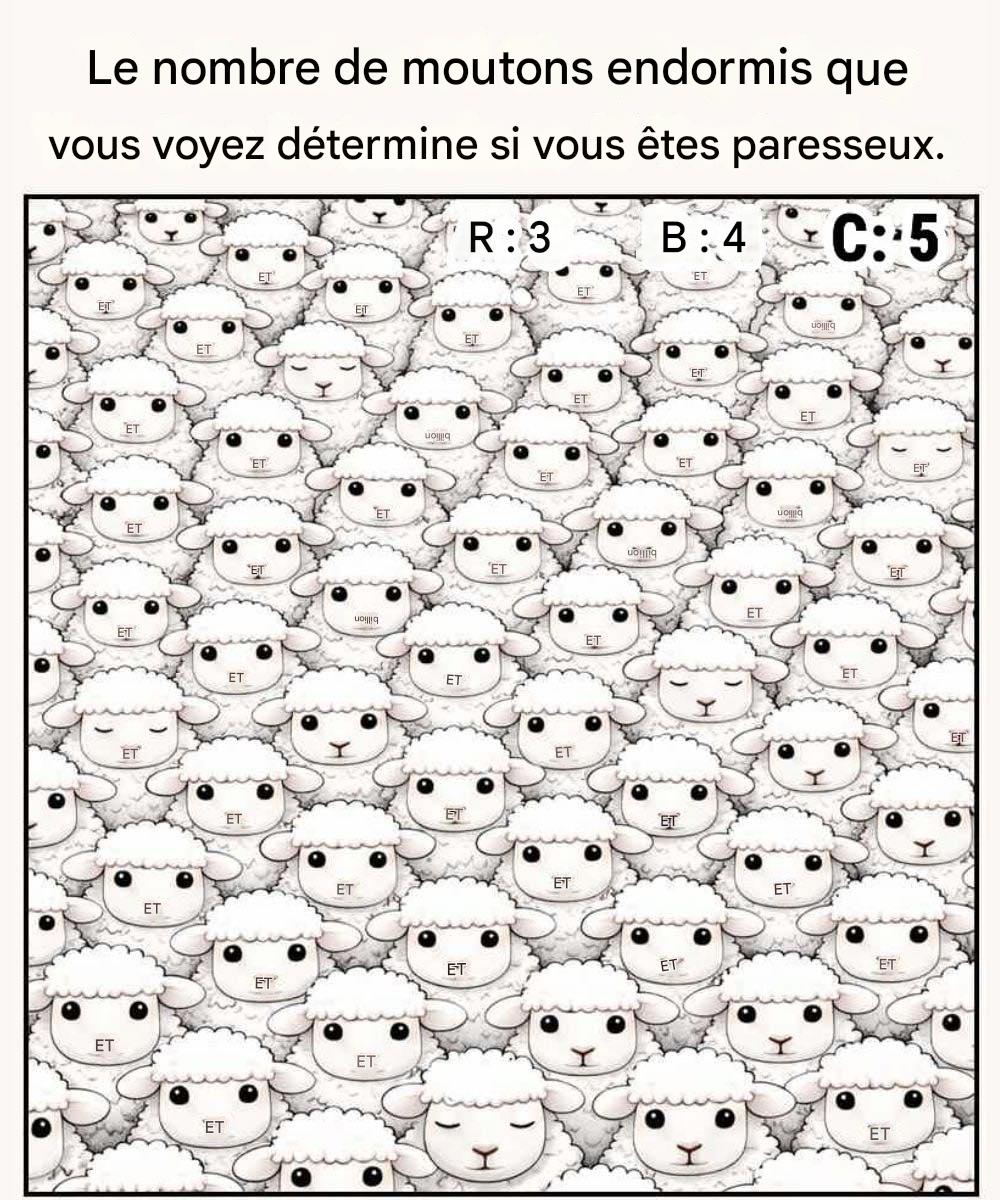 Certains en voient trois. D'autres en trouvent rapidement quatre. Quelques-uns affichent fièrement cinq. Le titre humoristique suggère que paresseux le nombre que vous apercevez « déterminer si vous êtes » — mais rassurez-vous, il s'agit simplement d'un petit casse-tête amusant, et non d'un véritable test de personnalité.