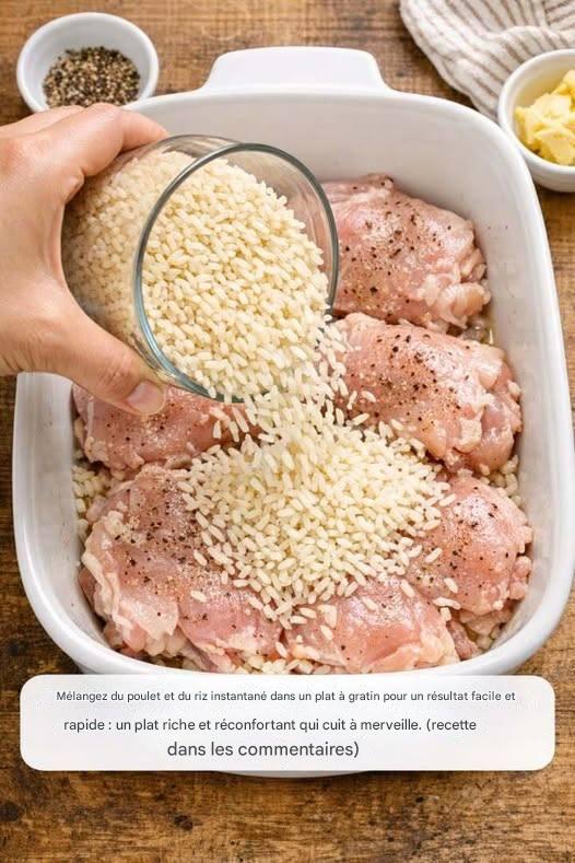 Ce gratin de poulet et riz est idéal pour un repas rapide et facile en semaine. Grâce au riz instantané et au poulet précuit, la préparation est ultra-rapide : quelques minutes suffisent pour un plat onctueux et réconfortant. L’association de deux soupes à la crème et d’un filet de lait crée une sauce riche qui cuit et hydrate parfaitement le riz pendant la cuisson.