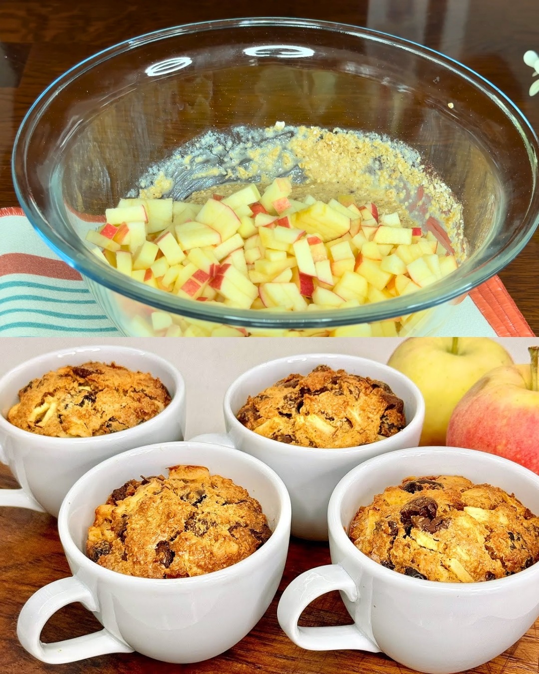 Ce mug cake rapide et délicieux aux flocons d’avoine, pommes et pépites de chocolat est idéal pour un petit-déjeuner ou un goûter individuel. Il associe des ingrédients sains comme l’avoine, les pommes et les fruits secs à des pépites de chocolat sans sucre pour une gourmandise saine et gourmande. Prête en quelques minutes, cette recette est idéale pour satisfaire vos envies sans avoir à préparer une fournée entière.