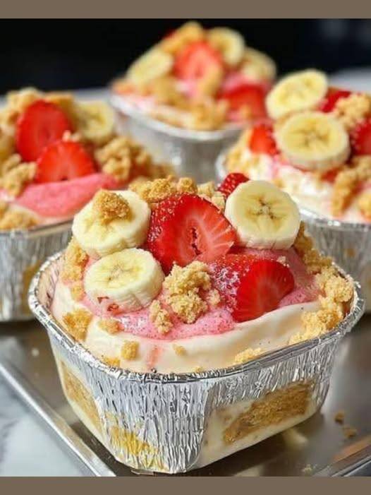 Ce pudding banane-cheesecake aux fraises est une délicieuse combinaison, sans cuisson, de deux desserts classiques. Des couches de pudding onctueux à la vanille et de bananes fraîches s'associent à des fraises juteuses et à une mousse de cheesecake riche et aérienne, créant un dessert bien plus gourmand qu'un pudding à la banane traditionnel. La véritable magie opère lors du passage au réfrigérateur : les biscuits à la vanille s'attendrissent et acquièrent une texture tendre, presque comme un gâteau.