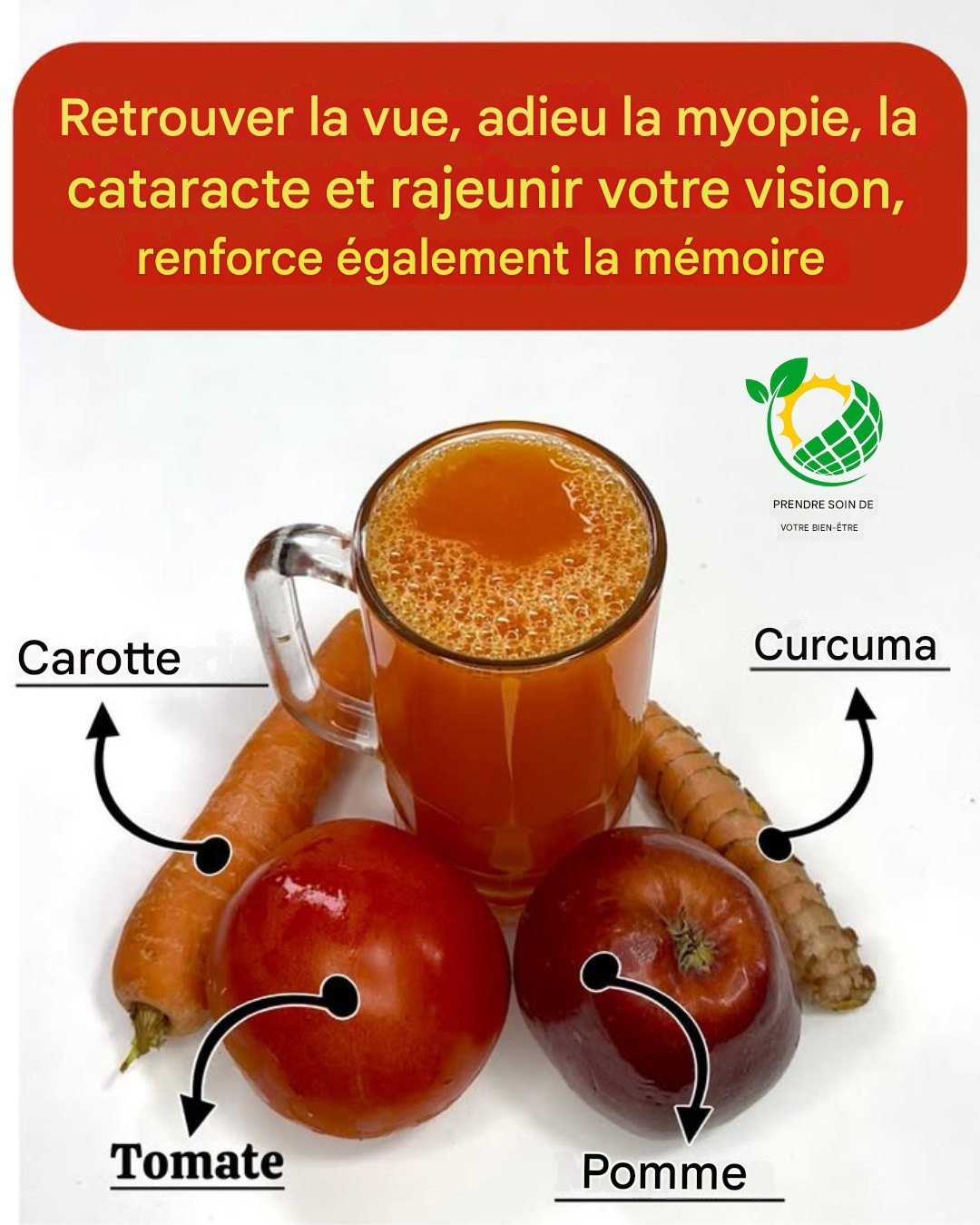 Dans cet article, je vous propose une boisson naturelle puissante à base de carotte, pomme, tomate et curcuma.
