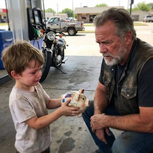 Il ne devait pas avoir plus de cinq ans, serrant contre lui un petit cochon en céramique gribouillé au crayon, les larmes ruisselant sur son visage. Je venais de finir de faire le plein de ma Harley quand de petites mains ont tiré sur mon gilet.